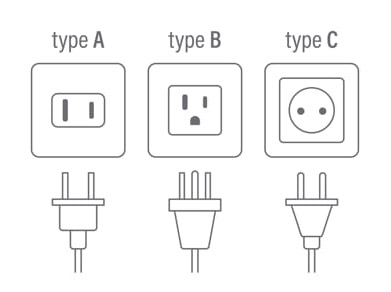 Type C: Two round pins (common in Europe) – some hotels and newer buildings have universal sockets.